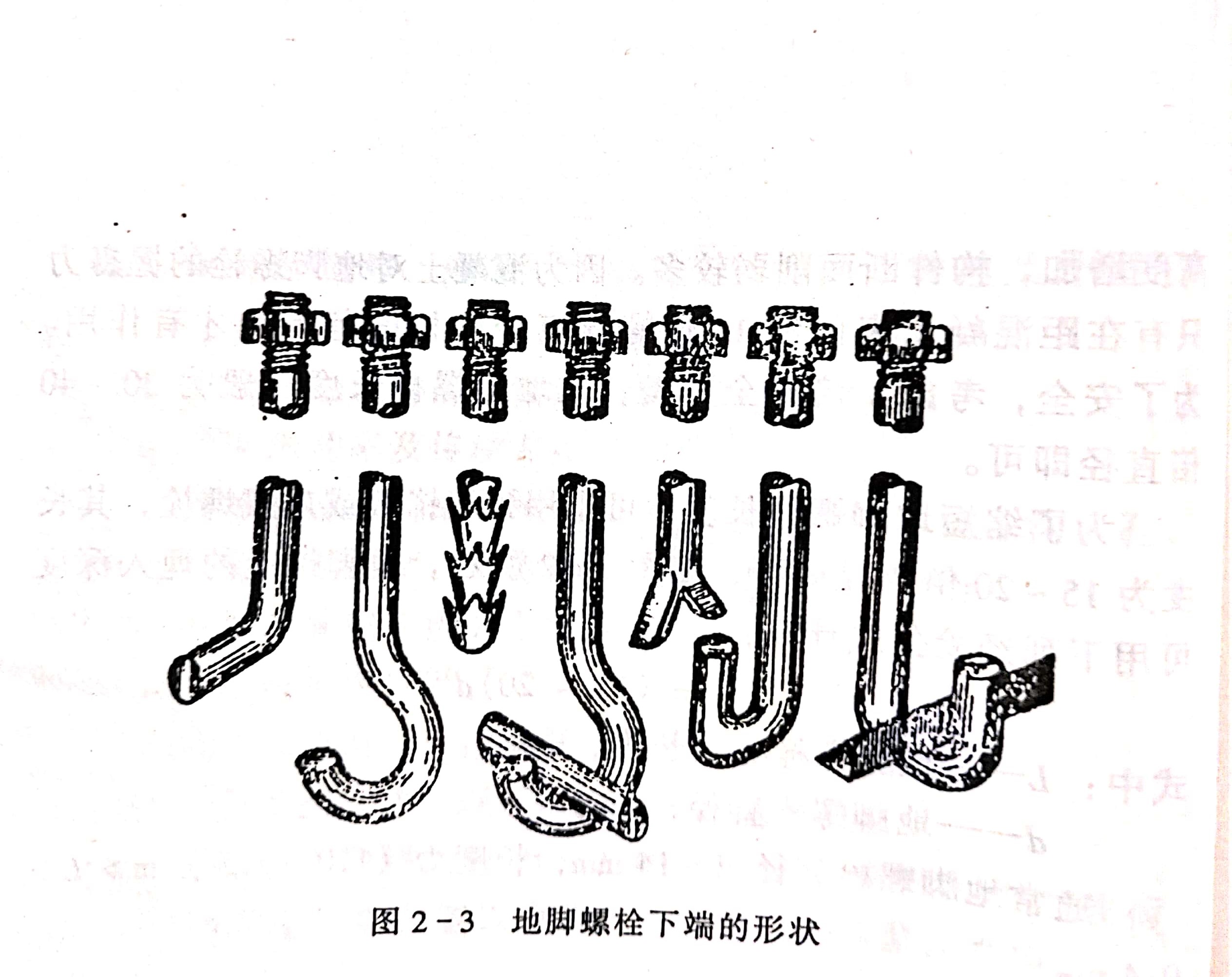 為了使地腳螺栓與基礎(chǔ)更好地結(jié)合,不易從孔內(nèi)拔出,通常地腳螺栓下端做成各種形狀,如圖2-3所示。