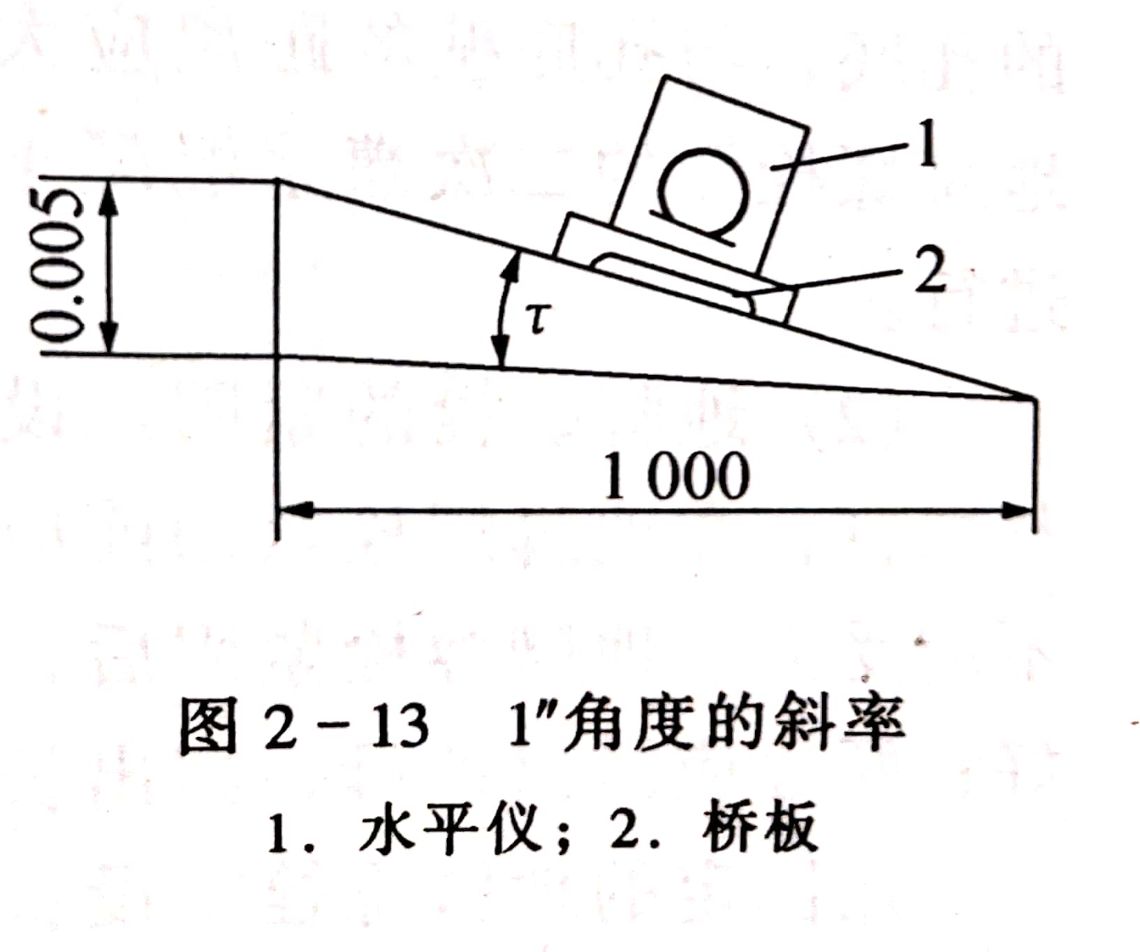 水平尺的刻度值是指氣泡移動(dòng)一格刻度時(shí),水平尺所需傾斜角的大小。由于水平尺的使用傾斜角r很小,因此,水平尺又可用斜率(mr)表示為00m0m.01m100mn和0.025mm/1000m如圖2-13所示。
