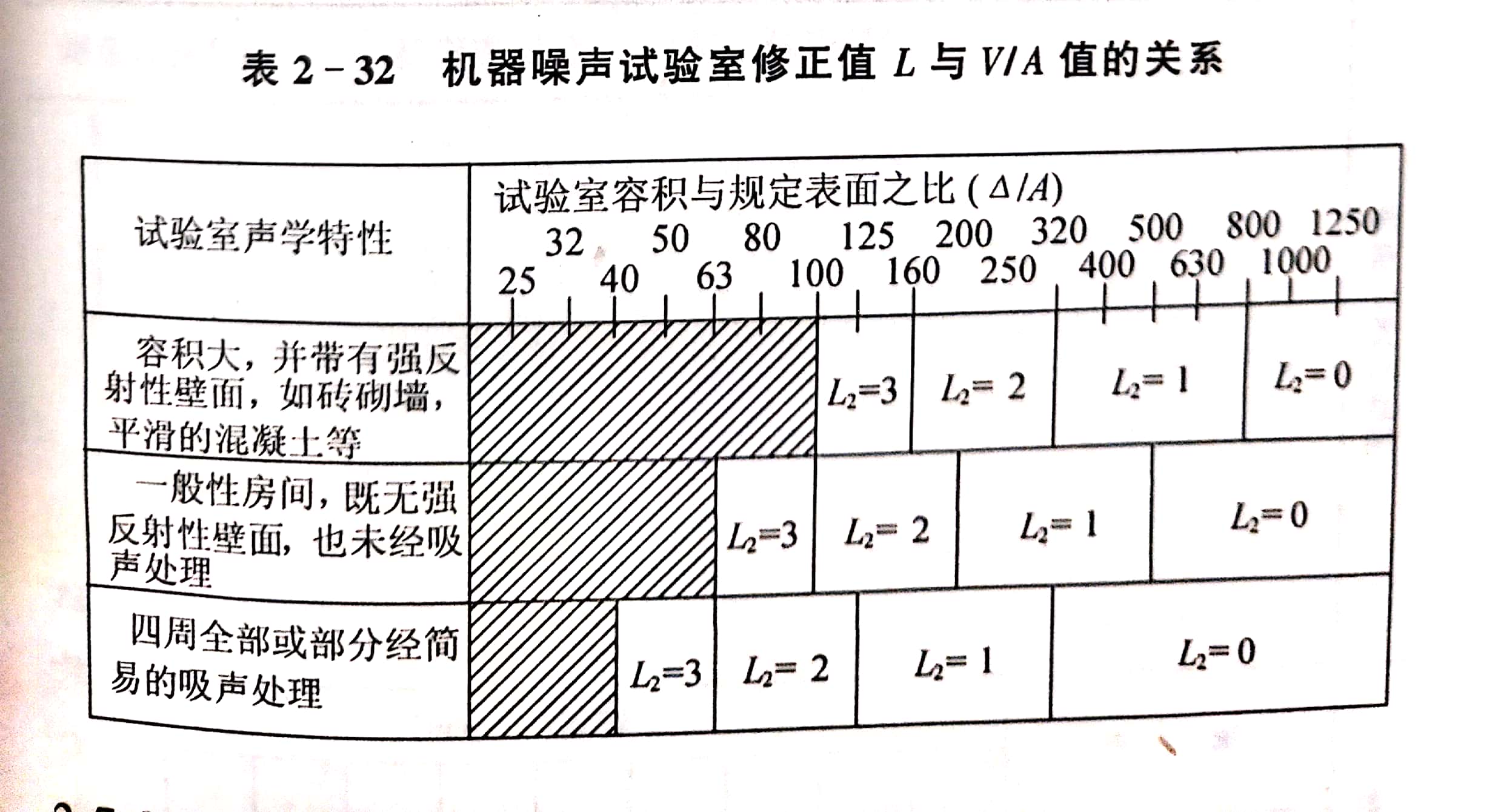 為修正試驗(yàn)室對機(jī)床噪聲測量的影響,即須在實(shí)測值中減去試驗(yàn)室的修正值L2,如表2-32所示。