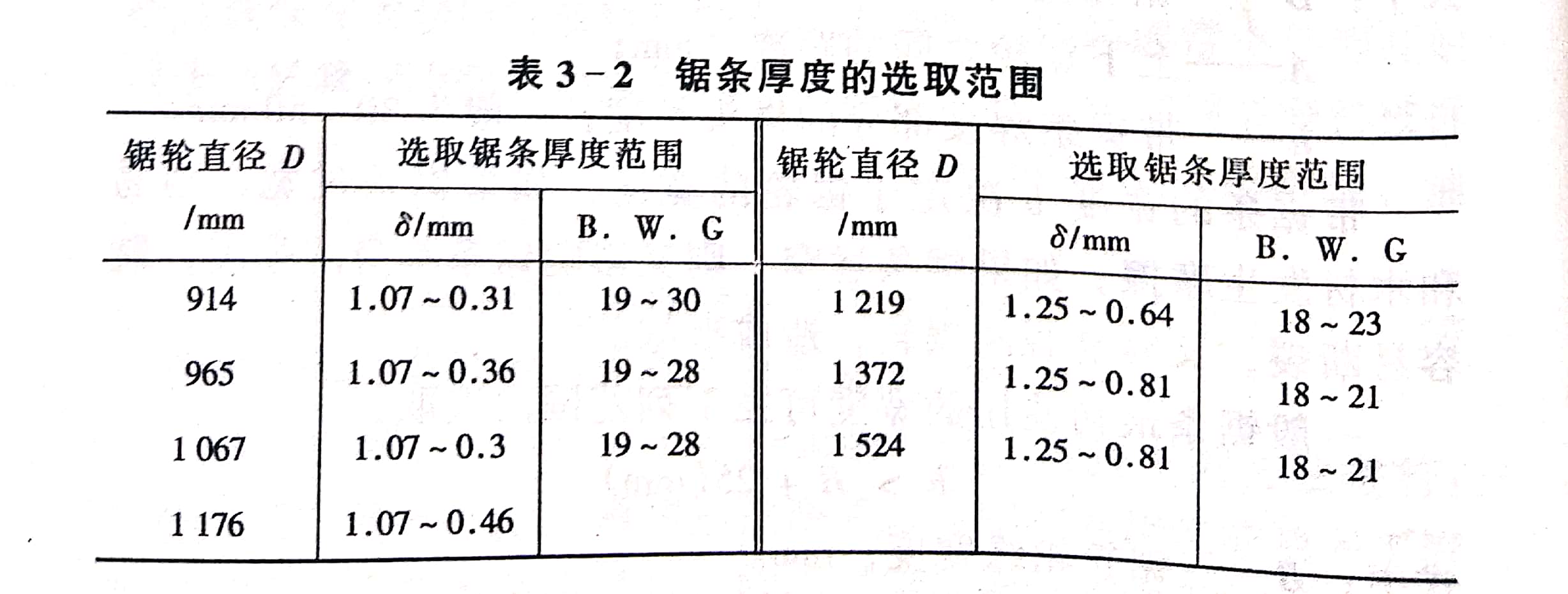 鋸條厚度也可參照表3-2選取。