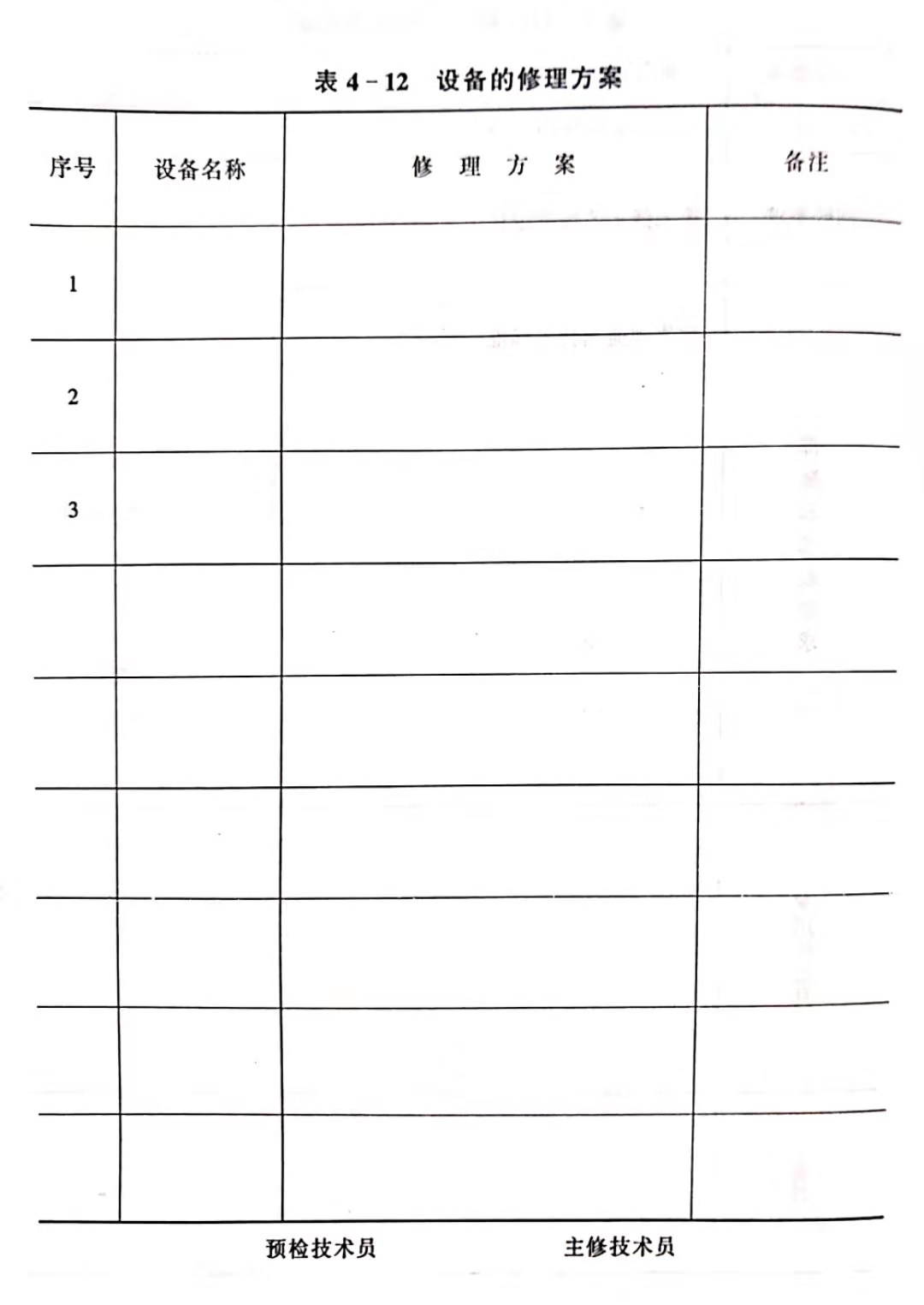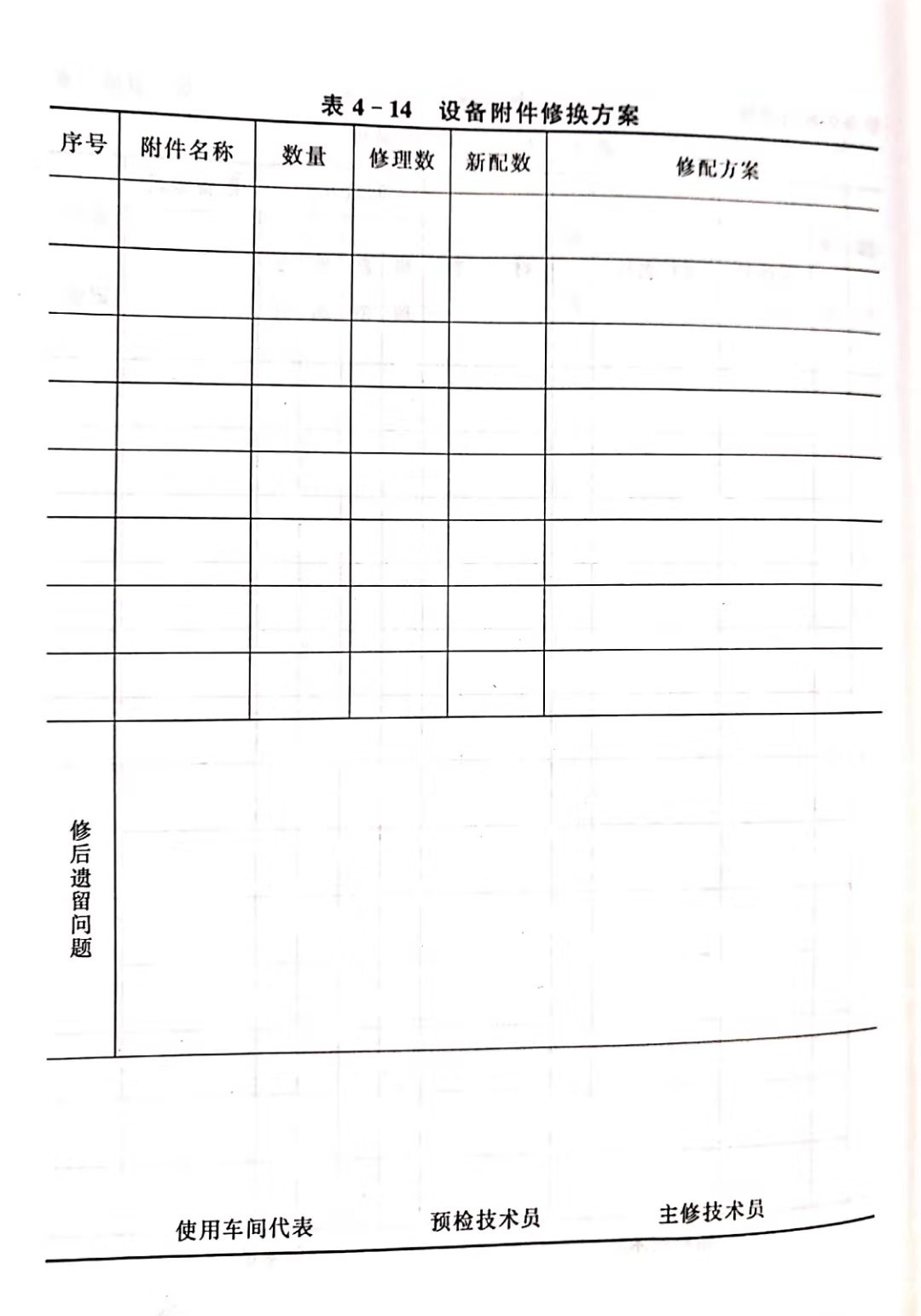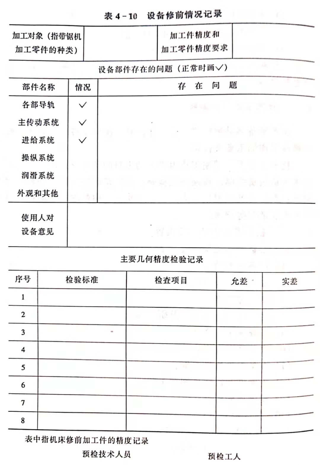(1)設(shè)備修前情況記錄表